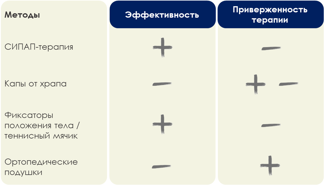 Сравнение с другими применяемыми подходами для лечения позиционного храпа и ночного апноэ